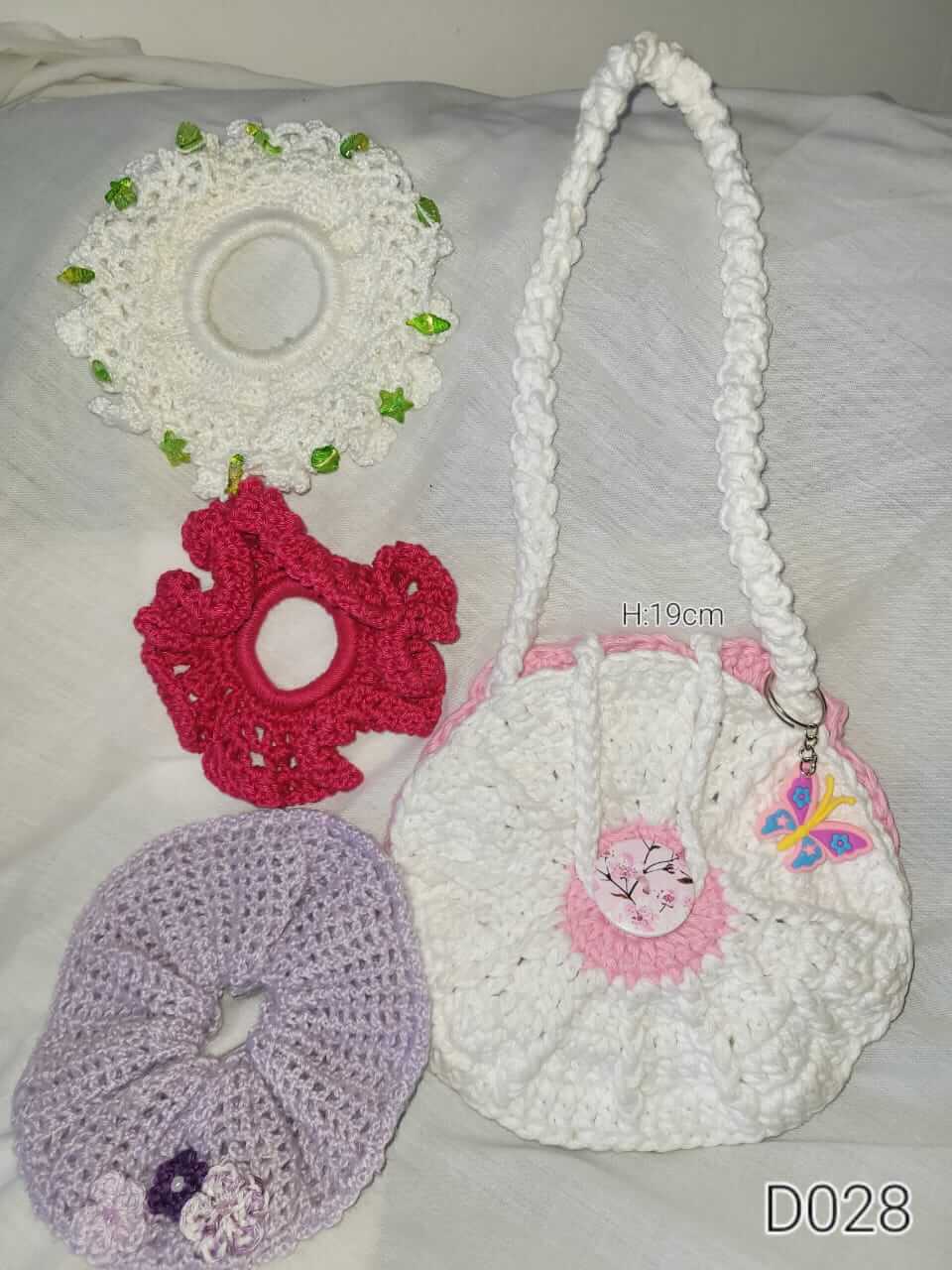 Crochet bag with 3 scrunchies